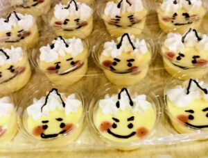 この日のデザートは、鬼の顔をした「鬼プリン」です。「かわいくて、おいしいねぇ」と、笑顔で話されていました。鬼プリンを囲んで、笑顔あふれる穏やかな時間となりました。